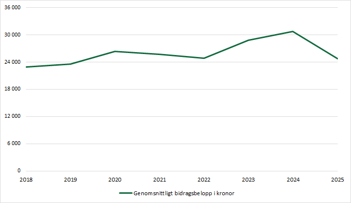 Genomsnittligt bidragsbelopp per hushåll i kronor, 2018–